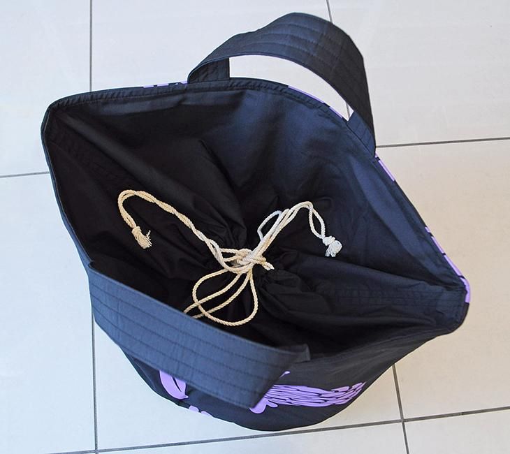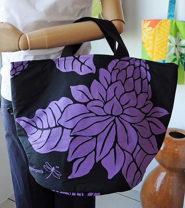 TOP > 〜新商品〜 バケツバッグ・巾着タイプ (L) ブラック&パープル トーチジンジャー柄【1点もの】
