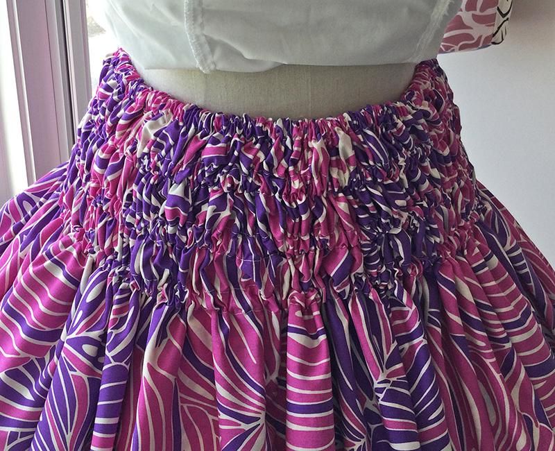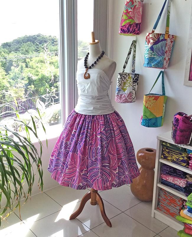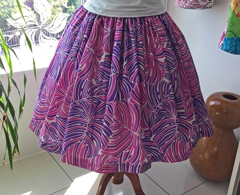 TOP > Pink Lei シングルパウ パープル&ホットピンク・モンステラ総柄 ウエストゴム4本 丈73cm