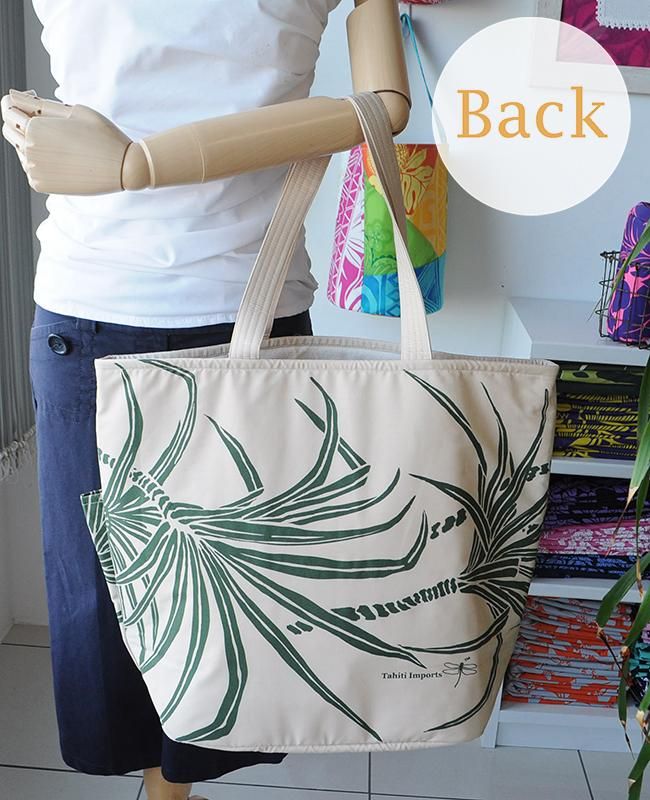TOP > Pink Lei オリジナル【1点もの】タヒチインポーツ デイリートートバッグ パンダナス柄・ベージュ&ハンターグリーン