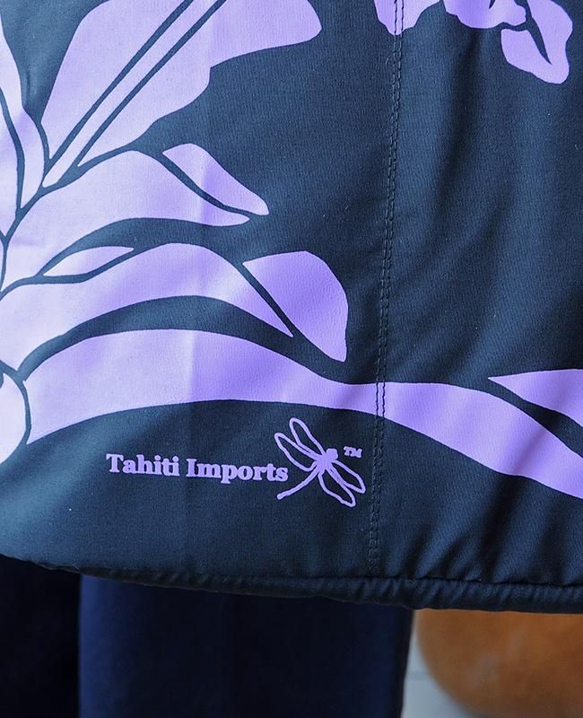 TOP > Pink Lei オリジナル【1点もの】タヒチインポーツ デイリートートバッグ オーキッド柄・ブラック&ライトパープル