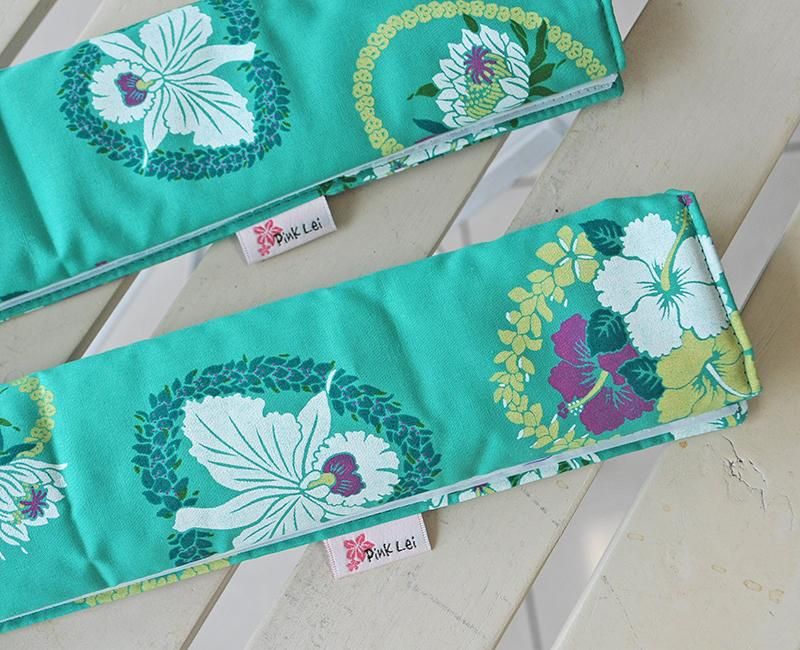 TOP > 〜Pink Lei オリジナル〜 シートベルトカバー エメラルドグリーン・オールドハワイアンフラワー柄【1点もの】