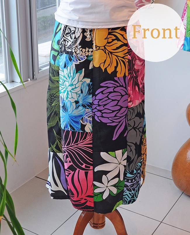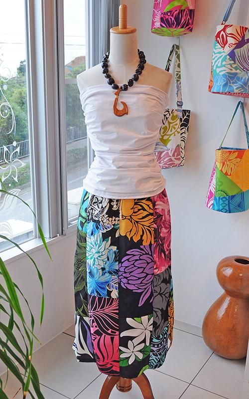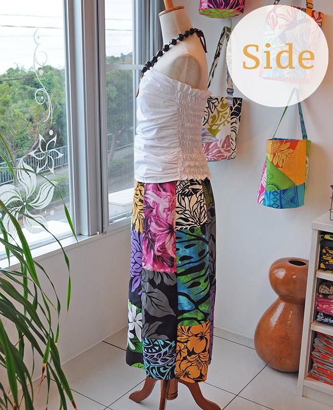 TOP > 【1点もの】 Pink Lei オリジナル/パッチドレス タイトロング ブラック・トロピカルフラワー柄【送料無料】