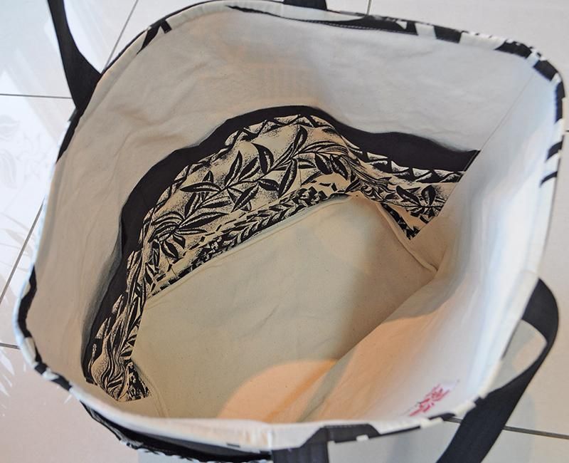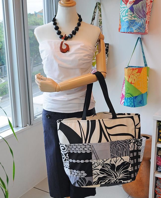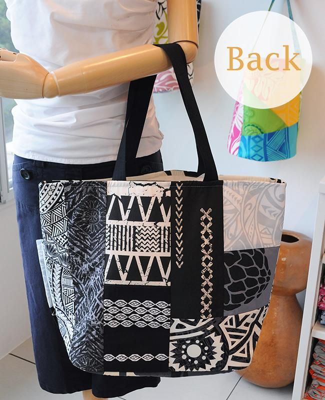 TOP > Pink Lei【1点もの】ハワイアンパッチ・デイリートートバッグ ホワイト&ブラック&グレー