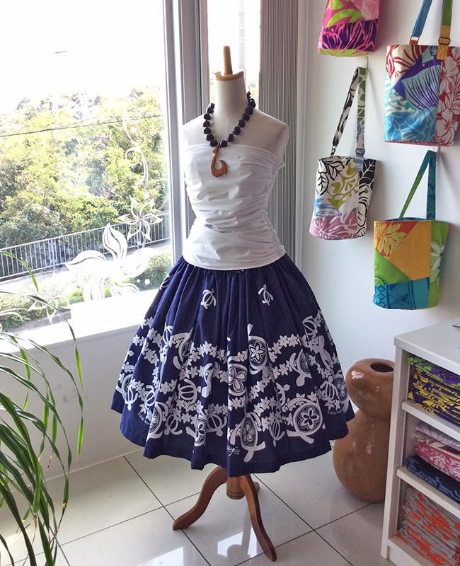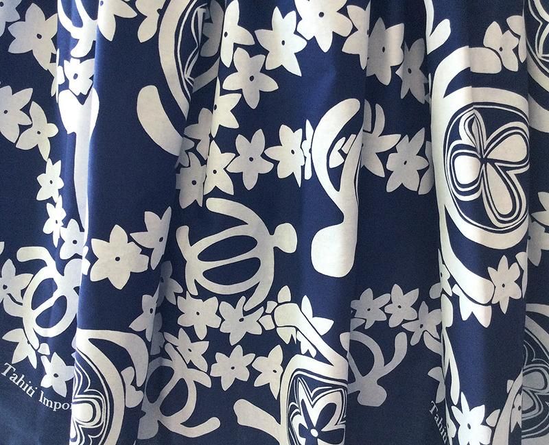 TOP > ☆希望スカート丈にて作成! タヒチインポーツ シングルパウ ネイビー&ホワイトホヌ柄【送料無料】