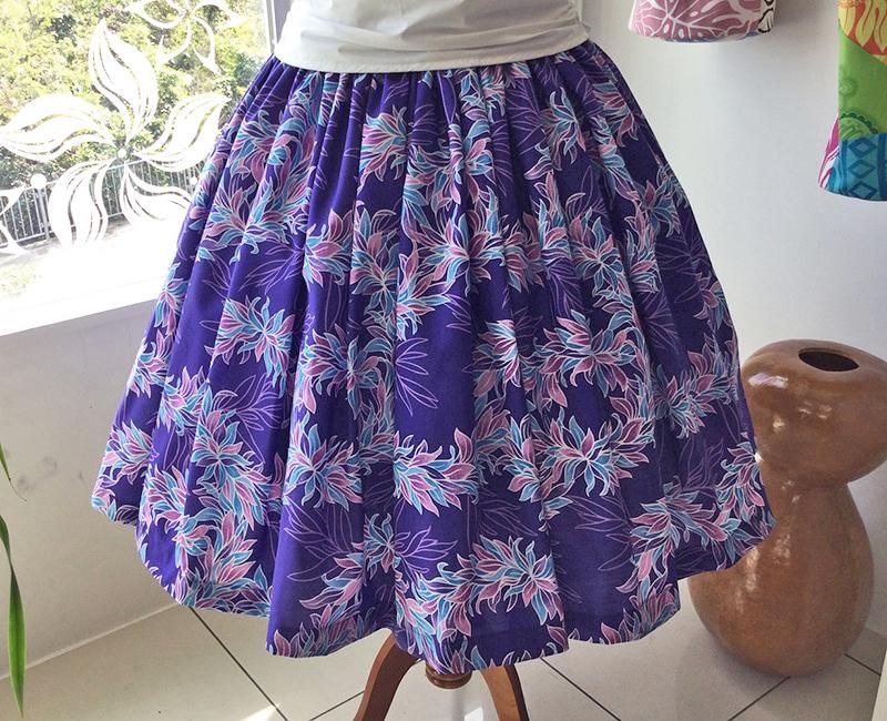 TOP > Pink Lei シングルパウ パープル&ライトブルー・レイ総柄 ウエストゴム4本 丈73cm