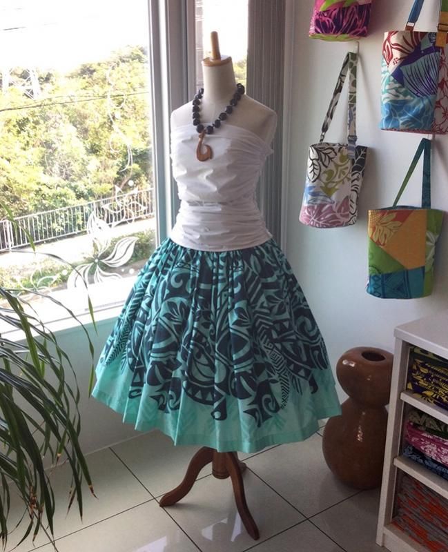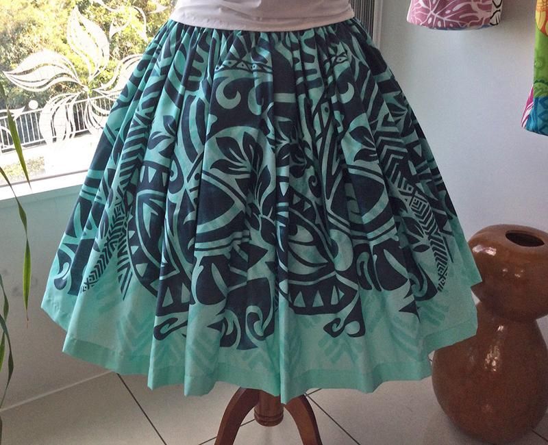 TOP > Pink Lei シングルパウ ミントグリーンタパ柄 ウエストゴム4本 丈73cm