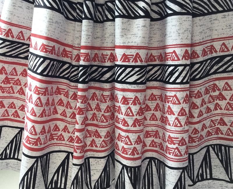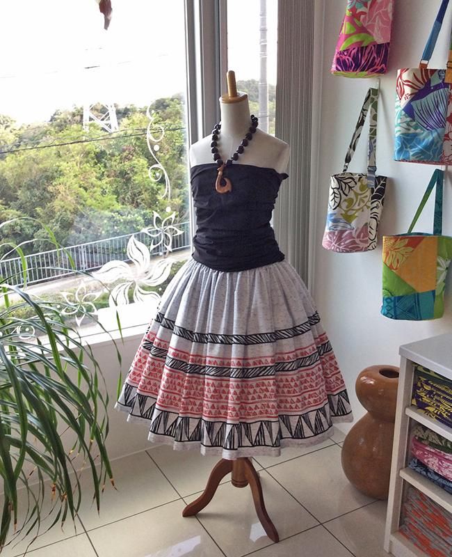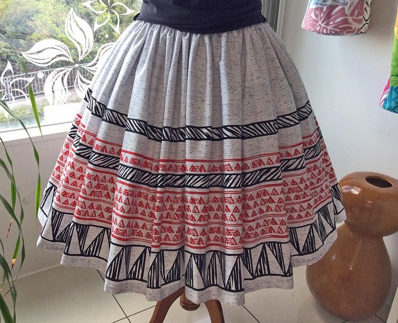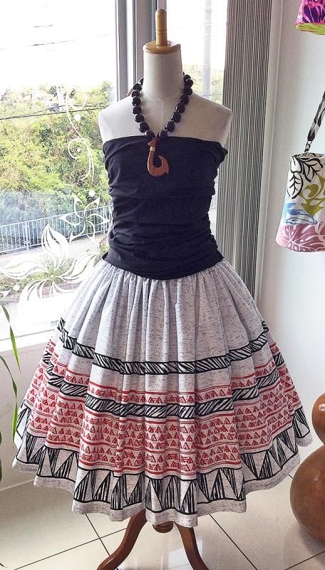 TOP > Pink Lei シングルパウ グレー&ブラック&レッド・古典柄 ウエストゴム4本 丈73cm