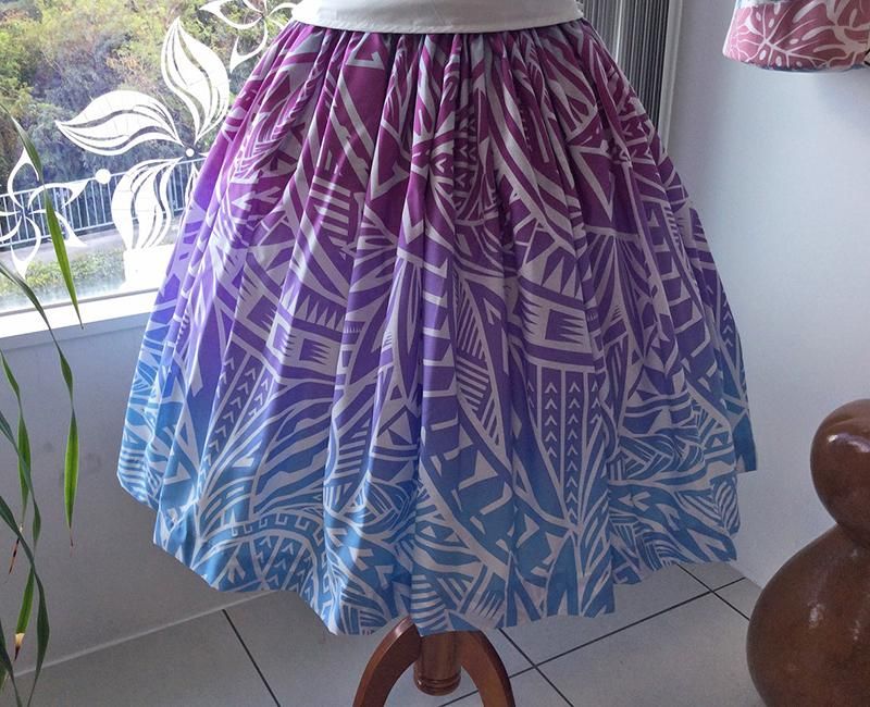 TOP > Pink Lei シングルパウ パープル〜ブルーグラデーション・タパ柄 ウエストゴム4本 丈73cm