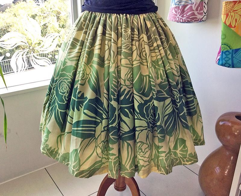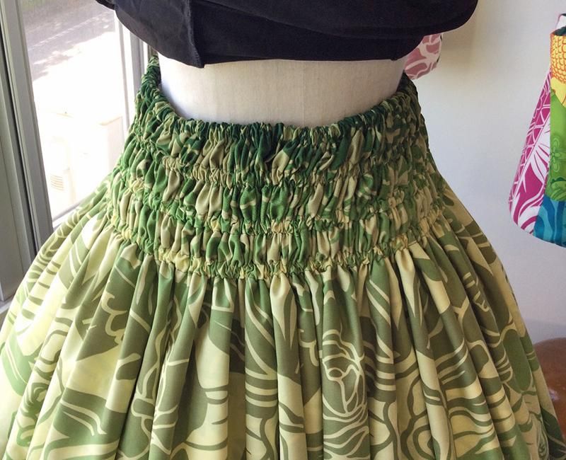 TOP > Pink Lei シングルパウ グリーン&イエローグラデーション・ニューロケラニ柄 ウエストゴム4本 丈73cm