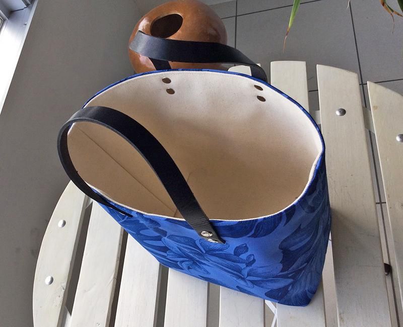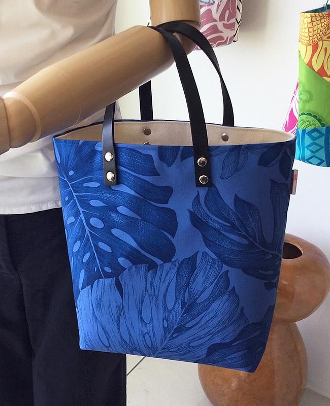 TOP > Pink Lei 【1点もの】ショッピングトートバッグ(帆布) ブルー・モンステラ&プルメリア柄
