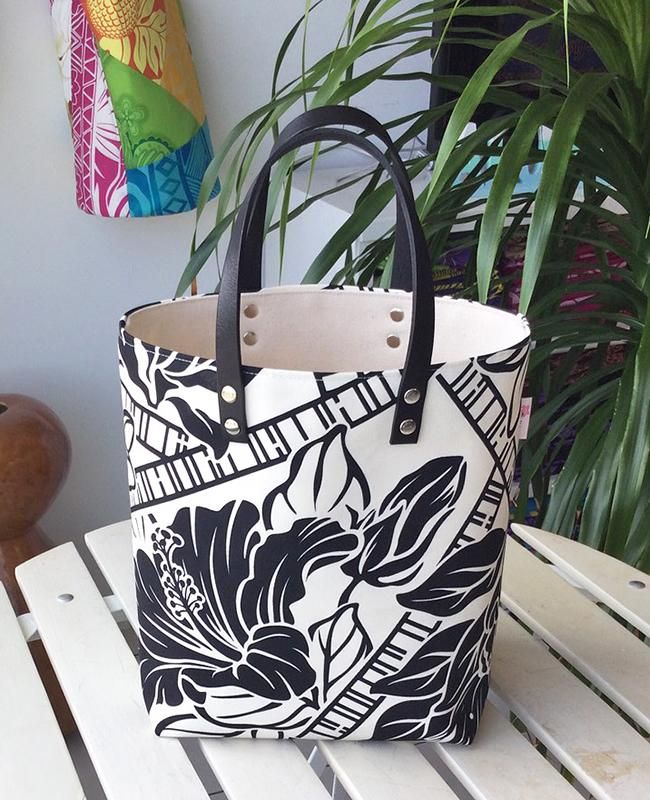 TOP > Pink Lei 【1点もの】ショッピングトートバッグ(帆布) ホワイト&ブラック・古典フラワー柄