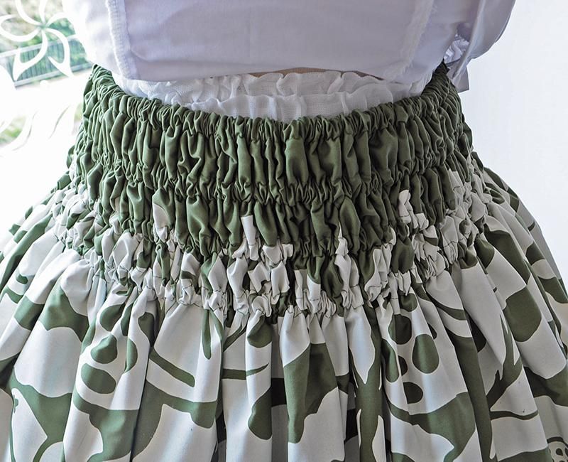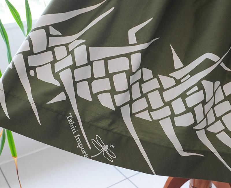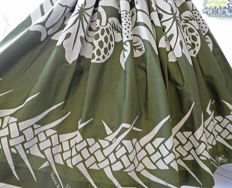 TOP > ☆希望スカート丈にて作成! タヒチインポーツ シングルパウ オリーブ&ホワイト ラウハラ&トロピカルフルーツ柄【送料無料】