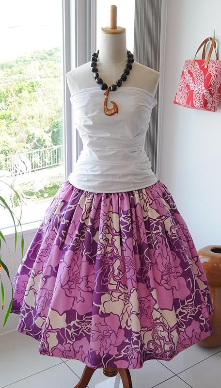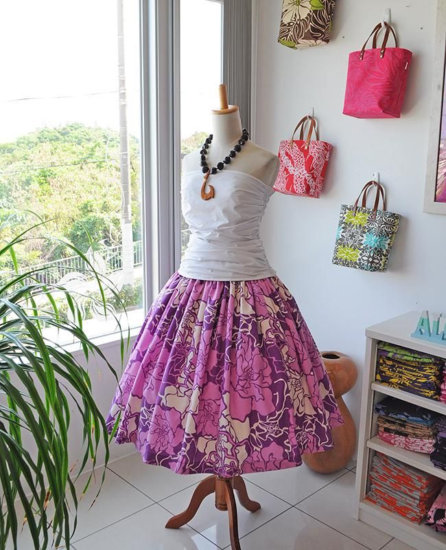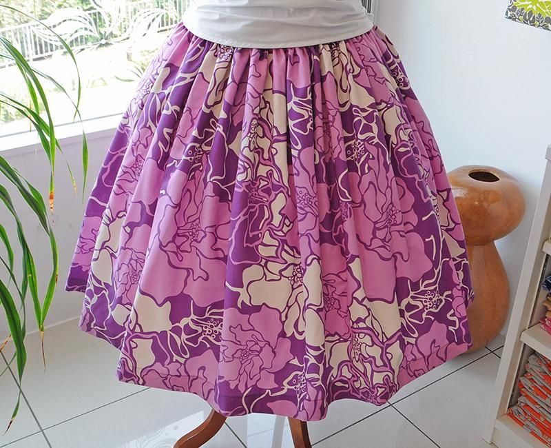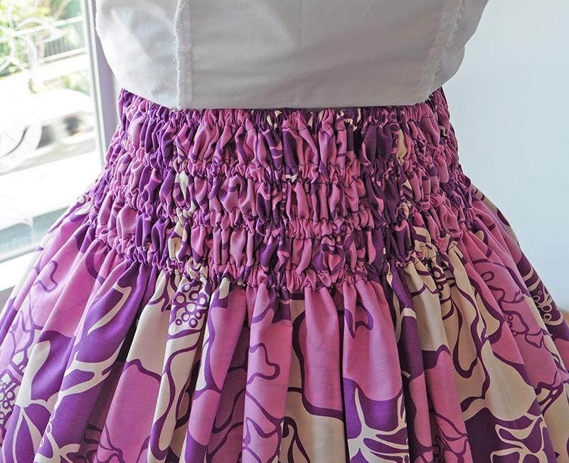 TOP > Pink Lei シングルパウ パープル&ピンク ロケラニ柄 ウエストゴム4本 丈73cm