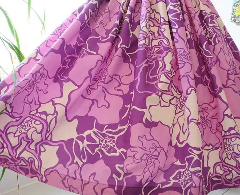 Pink Lei シングルパウ パープル&ピンク ロケラニ柄 ウエストゴム4本 丈73cm