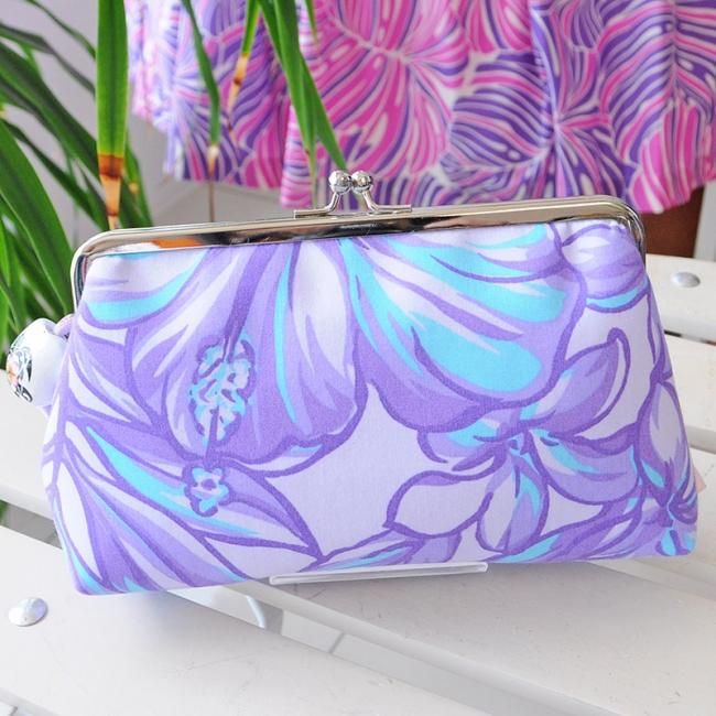 TOP > Pink Lei オリジナル【1点もの】 がま口・通帳ケース ラベンダー&ライトブルー・ハイビスカス&プルメリア柄