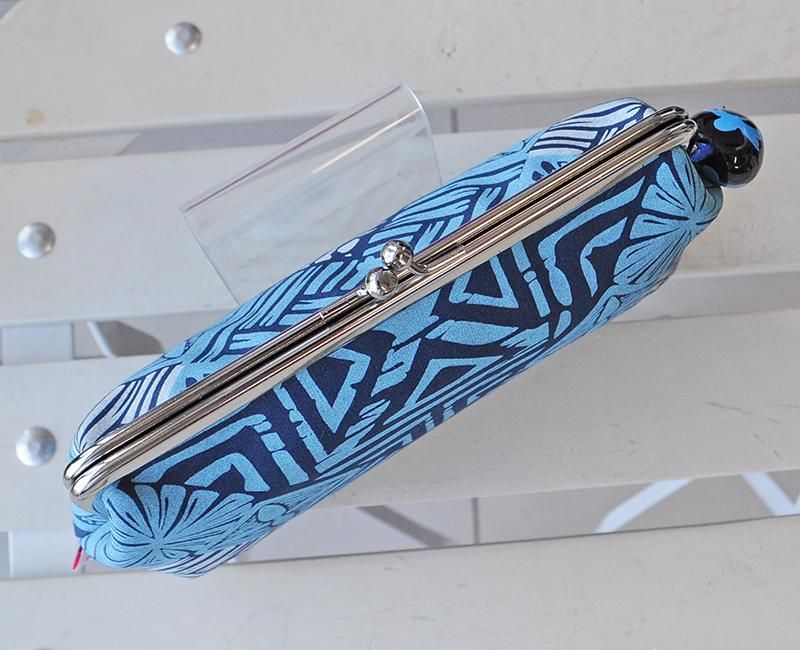 TOP > Pink Lei オリジナル【1点もの】 がま口・通帳ケース ネイビー&ホワイト・古典柄