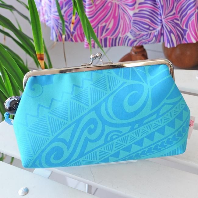 TOP > Pink Lei オリジナル【1点もの】 がま口・通帳ケース ターコイズ・古典柄