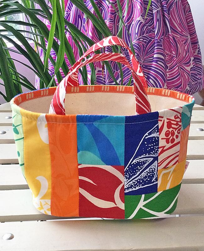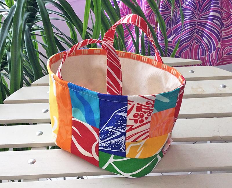 キルト作家さんとコラボして出来上がったオンリーワンのハワイアンパッチ・ミニミニトートバッグです。