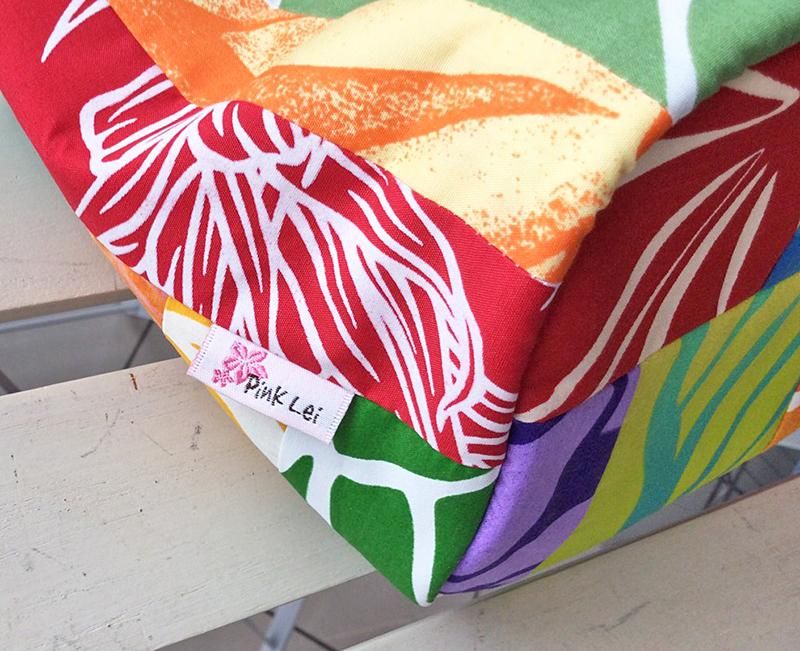 ハワイアンファブリックを一枚一枚丁寧に組み合わせ、色合い、柄の出方など細部にまで考慮して作られたPink Lei オリジナルの究極のデザイン!