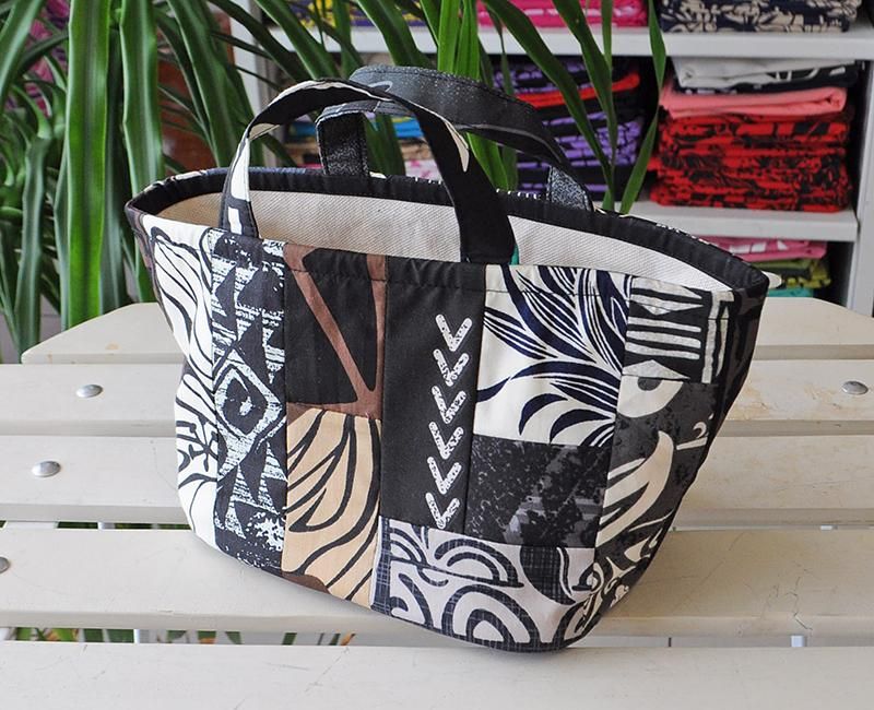 TOP > 〜新商品〜 Pink Lei【1点もの】ハワイアンパッチ・ミニミニトートバッグ ブラック&オフホワイト