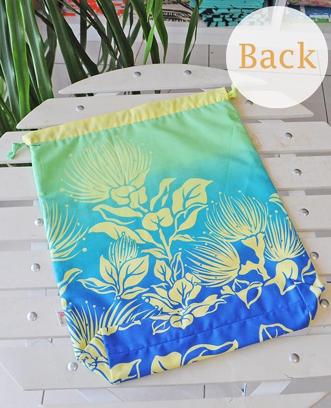 TOP > Pink Lei オリジナル 〜新商品〜 巾着袋 ブルー&レモンイエローグラデーション/レフア柄【1点もの】