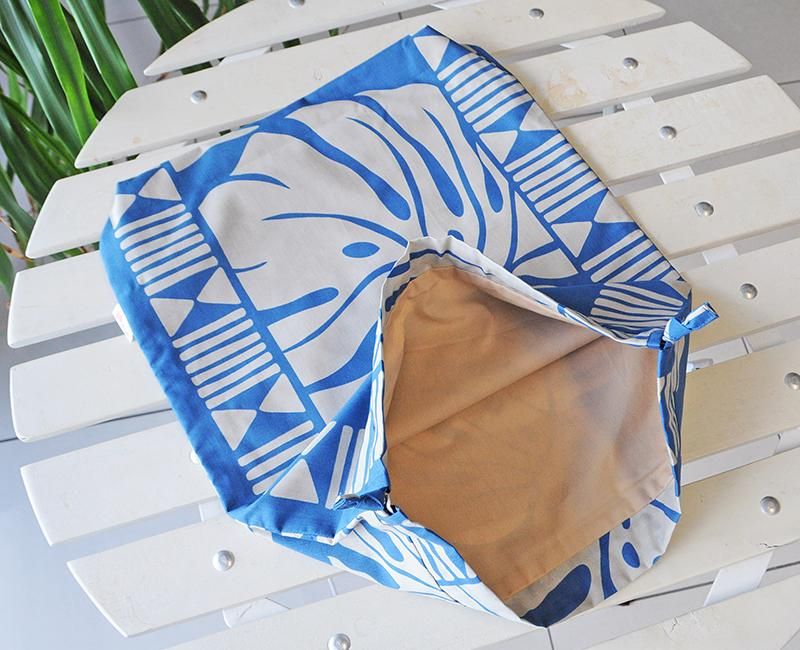 TOP > Pink Lei オリジナル 〜新商品〜 巾着袋 ブルー&ライトグレー/モンステラ柄【1点もの】