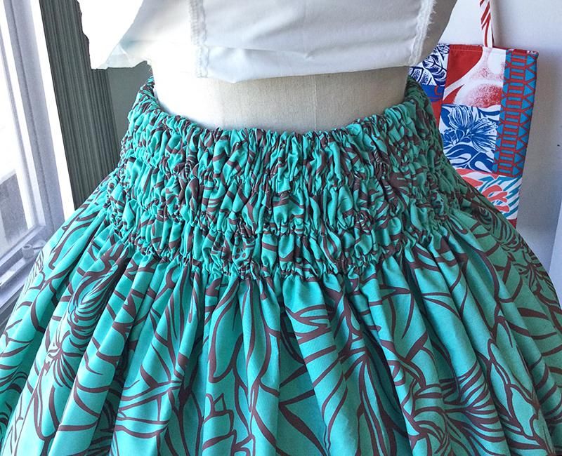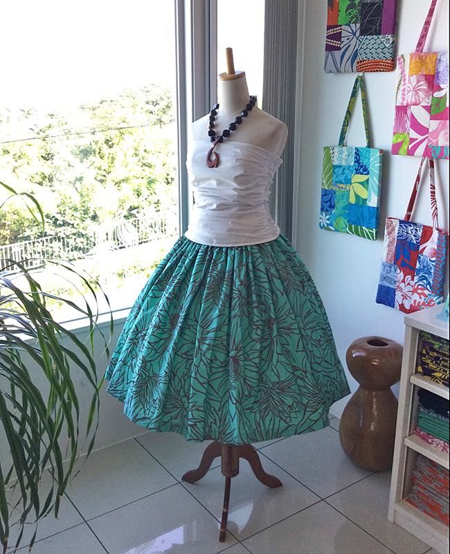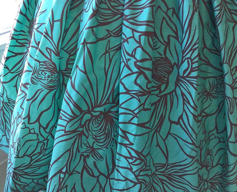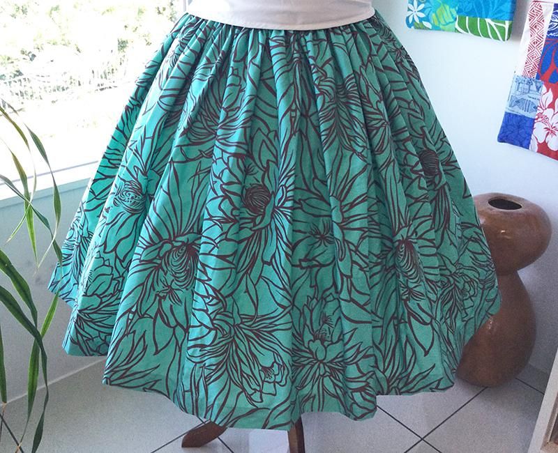 TOP > Pink Lei シングルパウ エメラルドグリーン&ブラウン・ムーンビューティー柄 ウエストゴム4本 丈73cm