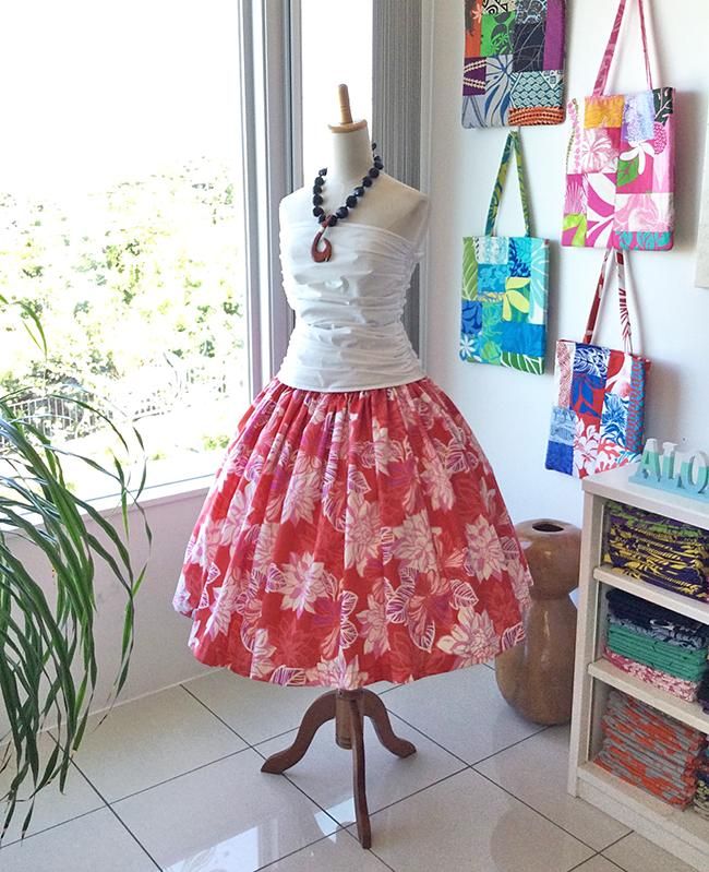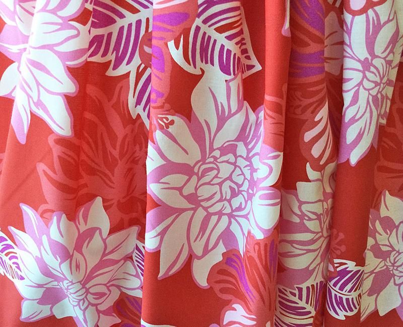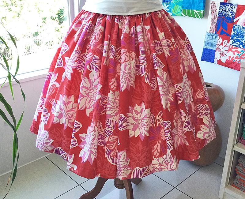 TOP > Pink Lei シングルパウ レッド&ホワイト&ピンク・モダンフラワー柄 ウエストゴム4本 丈73cm