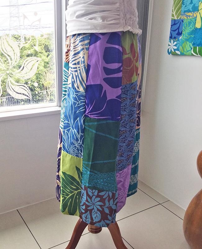 TOP > 【1点もの】 Pink Lei オリジナル/パッチドレス タイトロング ブルー&グリーン&パープル【送料無料】