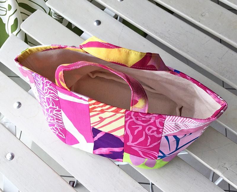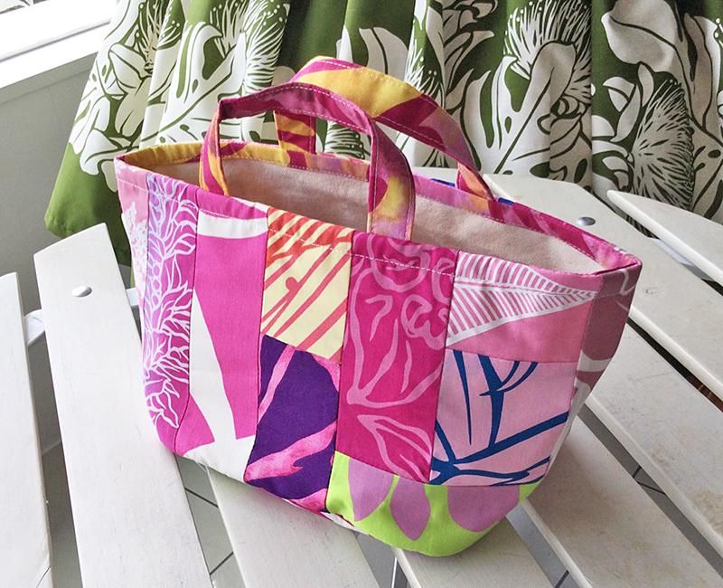 キルト作家さんとコラボして出来上がったオンリーワンのハワイアンパッチ・ミニミニトートバッグです。