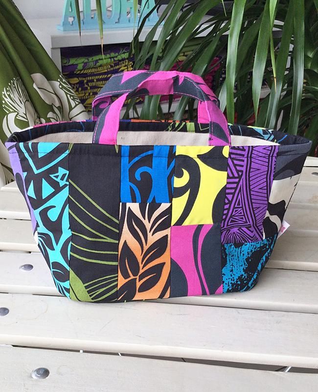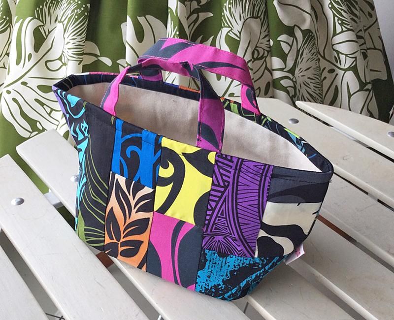 TOP > 〜新商品〜 Pink Lei【1点もの】ハワイアンパッチ・ミニミニトートバッグ ブラック・ネオンマルチ #2