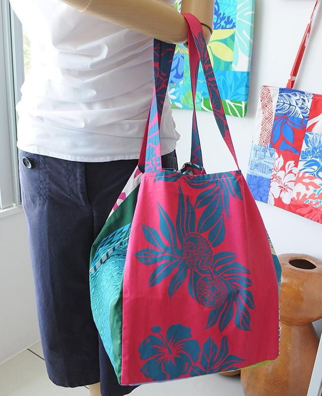 TOP > 〜新商品〜 Pink Lei オリジナル【1点もの】エコトートバッグ ピンク&エメラルドグリーン・レフア柄