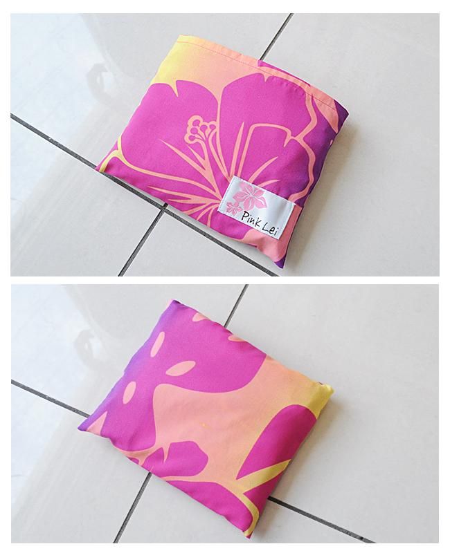 TOP > 〜新商品〜 Pink Lei【1点もの】ハワイアンパッチ・エコトートバッグ ネオンピンク&マルチ #4・ハイビスカス柄
