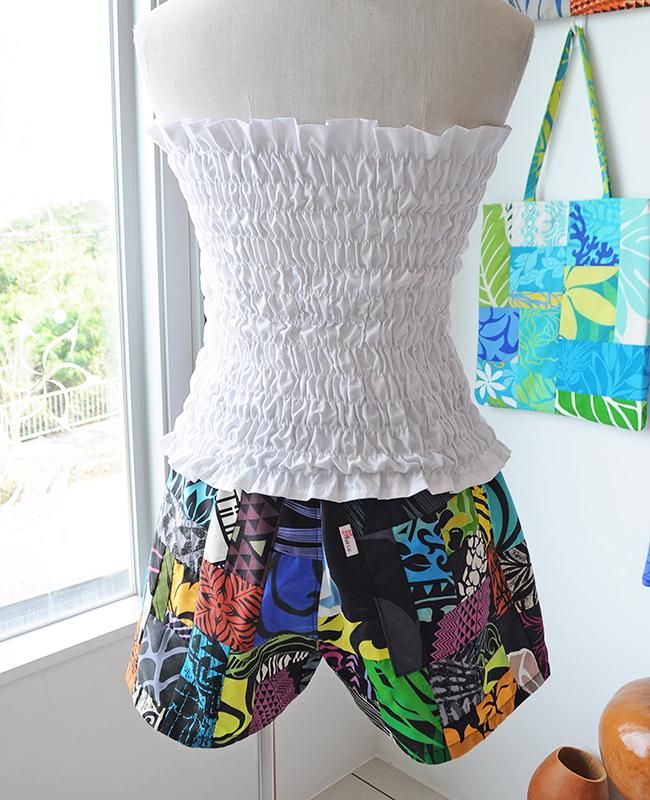沖縄のキルト作家さんとコラボして出来上がったオンリーワンのパッチパンツ(ショート/パッチ小/Sサイズ)です。