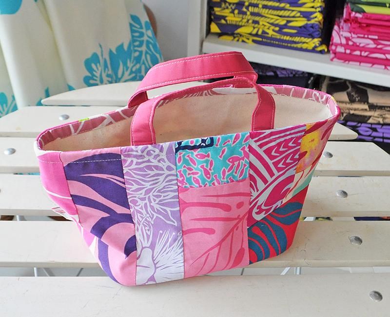 キルト作家さんとコラボして出来上がったオンリーワンのハワイアンパッチ・ミニミニトートバッグです。
