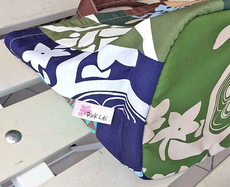 一枚一枚丁寧にパッチを組み合わせ、色合い、柄の出方など細部にまで考慮して作られたPink Lei オリジナル!