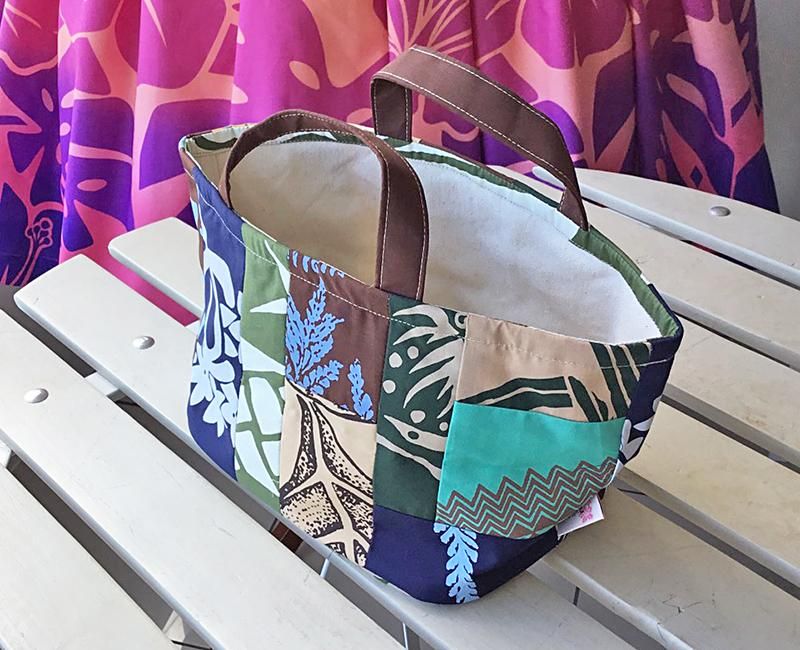キルト作家さんとコラボして出来上がったオンリーワンのハワイアンパッチ・ミニミニトートバッグです。