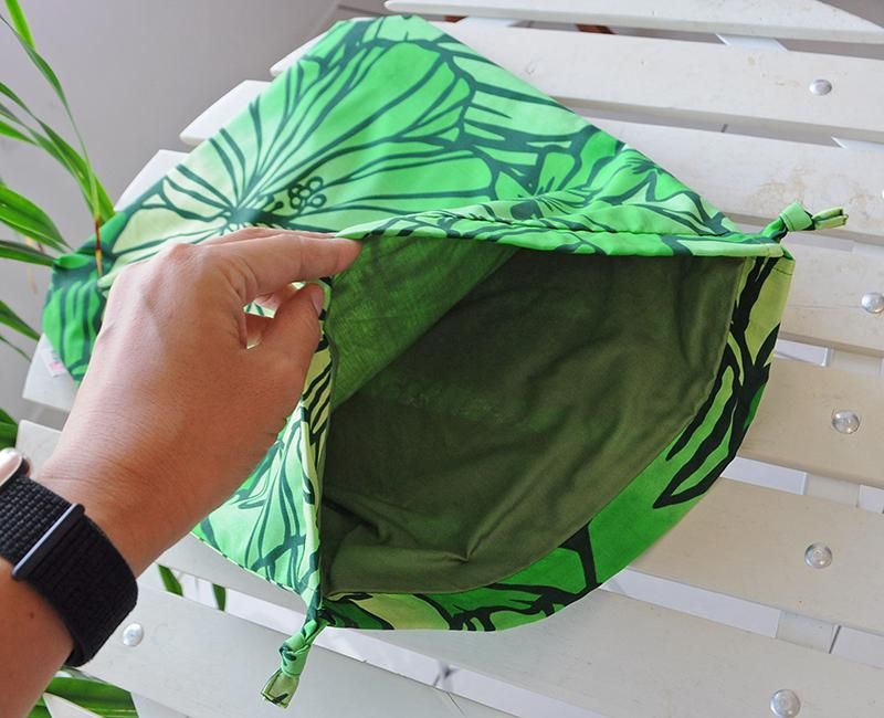 TOP > Pink Lei オリジナル 〜新商品〜 巾着袋 ブラックマルチ・グリーングラデーション/ハイビスカス&プルメリア柄【1点もの】