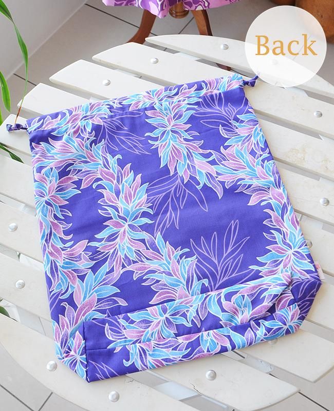 TOP > Pink Lei オリジナル 〜新商品〜 巾着袋 パープル&ライトブルー・レイ柄【1点もの】