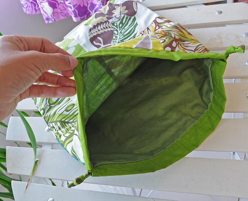 キルト作家さんとコラボして出来上がったオンリーワンのハワイアンパッチ・巾着袋です。
