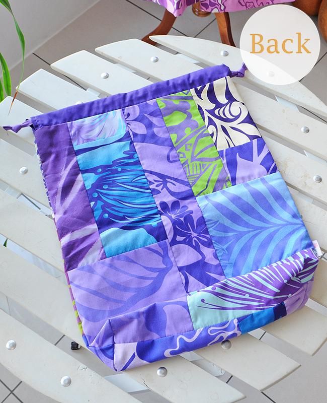 TOP > 〜新商品〜 Pink Lei オリジナル ハワイアンパッチ 巾着袋 パープル&ブルー/フラガール【1点もの】