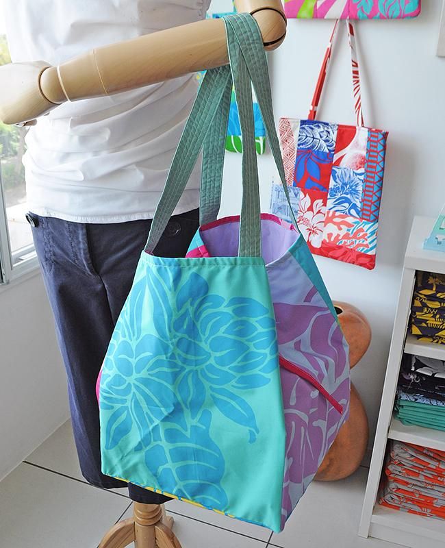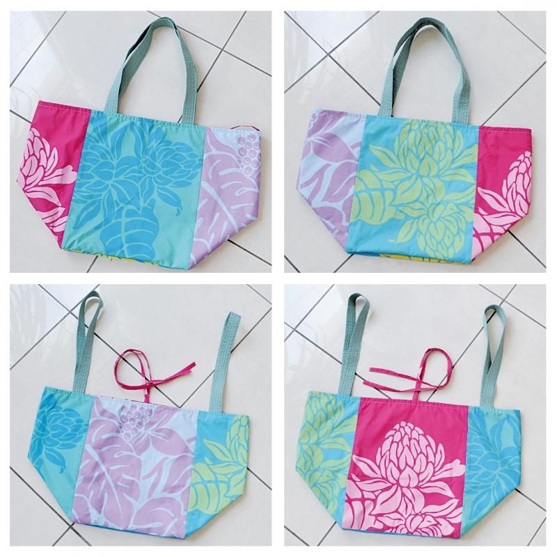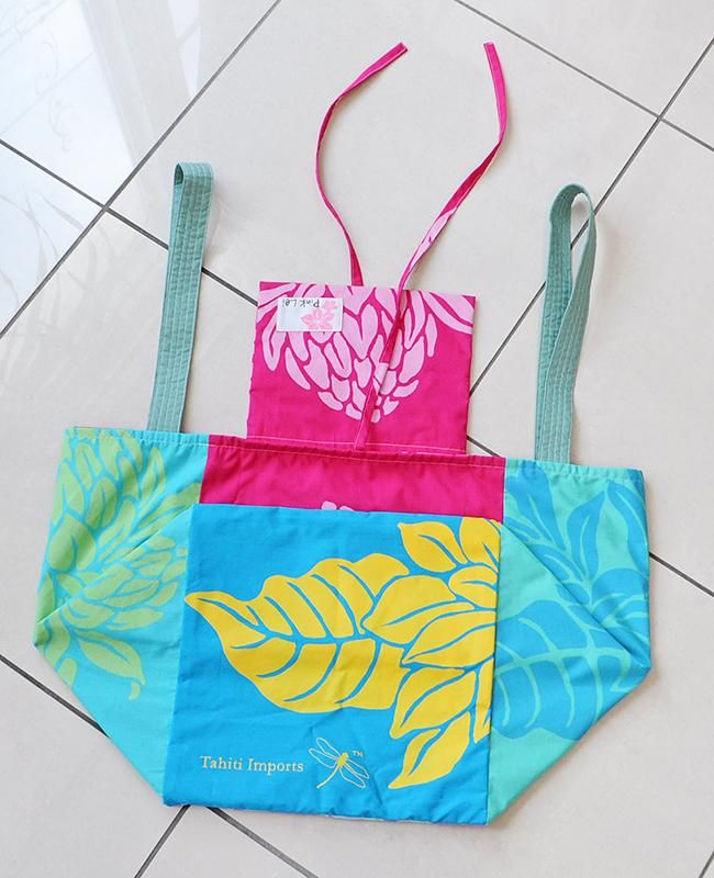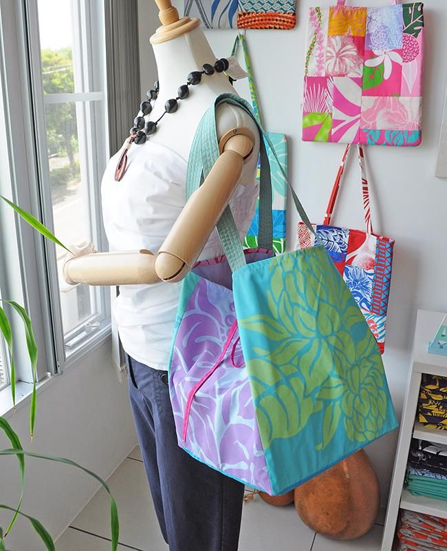 TOP > 〜新商品〜 Pink Lei【1点もの】タヒチインポーツ・エコトートバッグ ミントブルー&ホットピンク&パープル/トーチジンジャー柄