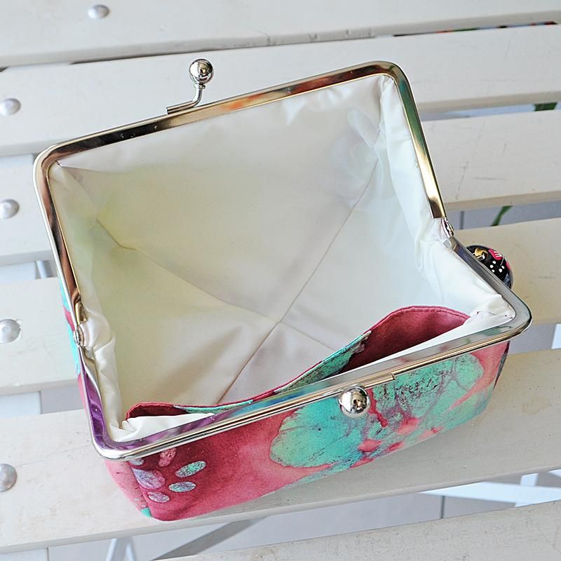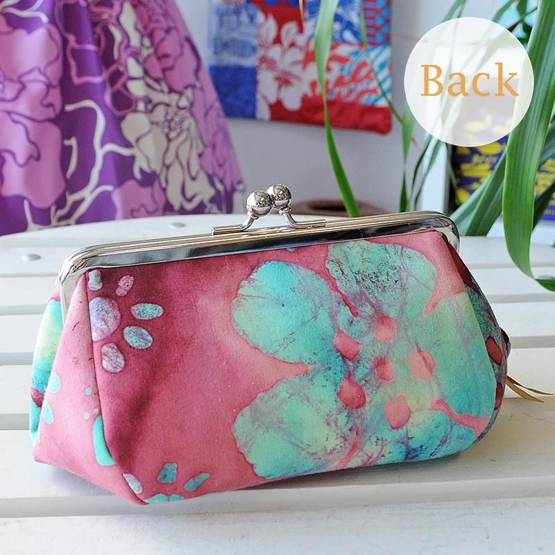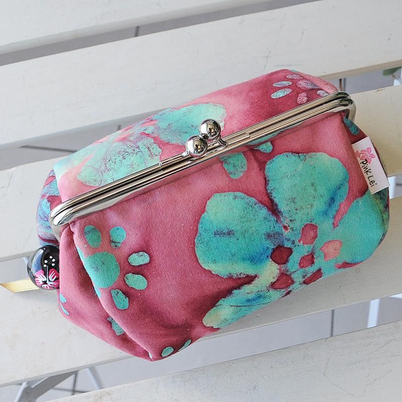 TOP > Pink Lei オリジナル【1点もの】 ひし型コスメポーチ ピンク&グリーン・水彩風フラワー柄