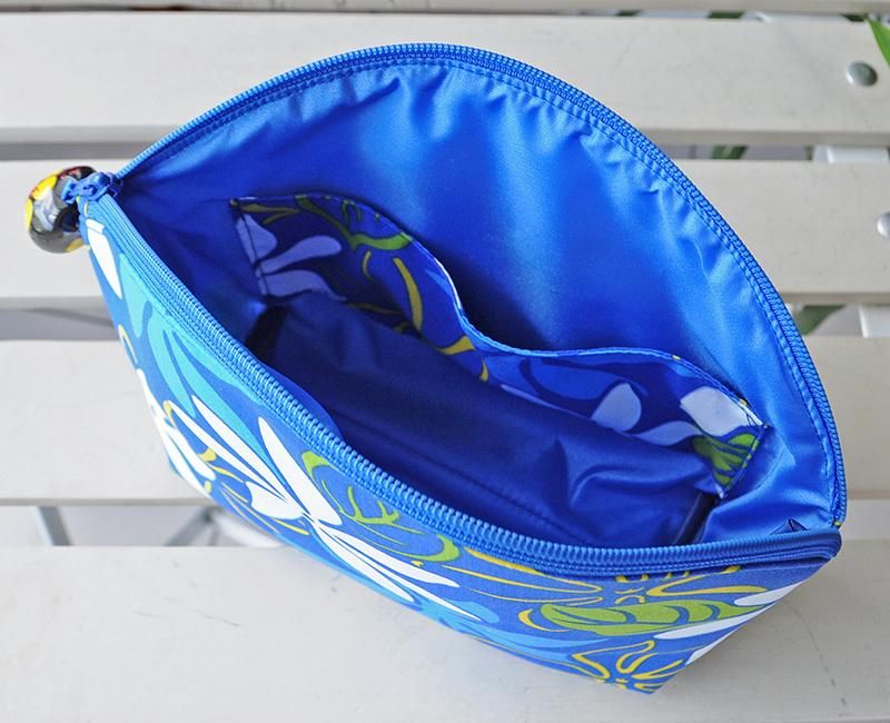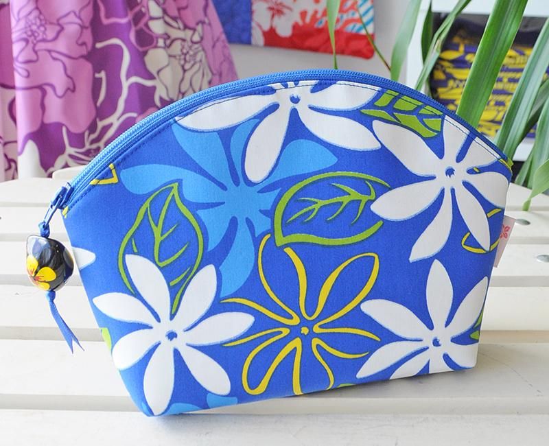 TOP > Pink Lei オリジナル【1点もの】 シェル型ファスナーポーチ ブルー&ホワイト・ティアレ柄