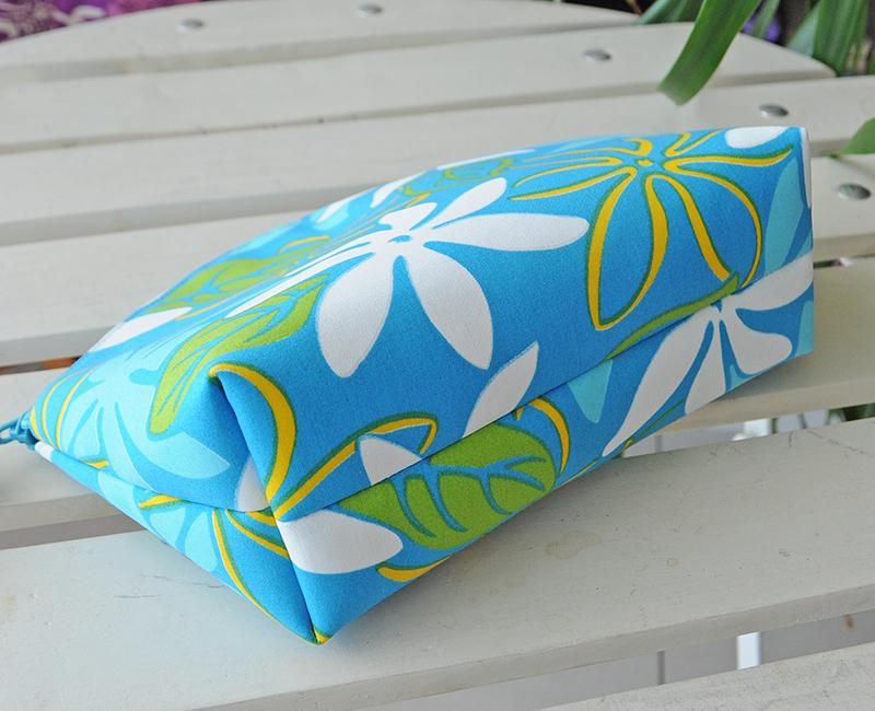 TOP > Pink Lei オリジナル【1点もの】 シェル型ファスナーポーチ ターコイズ&ホワイト・ティアレ柄