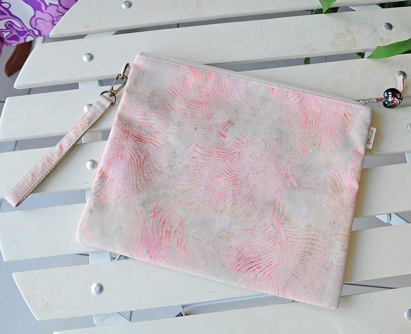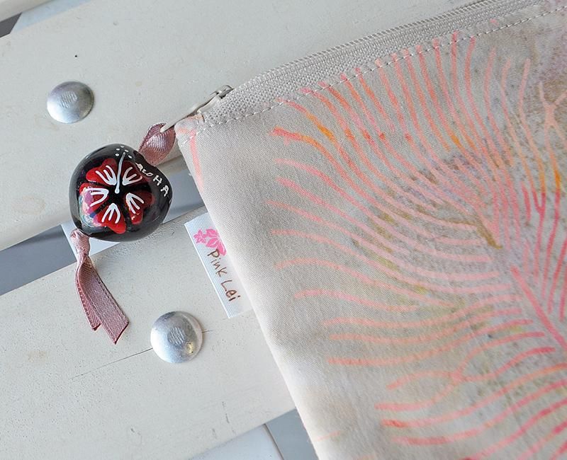 [ SALE ] Pink Leiオリジナル ハワイアンクラッチバッグ ククイ付き/オフホワイト&ピンク・リーフ柄【在庫限り】