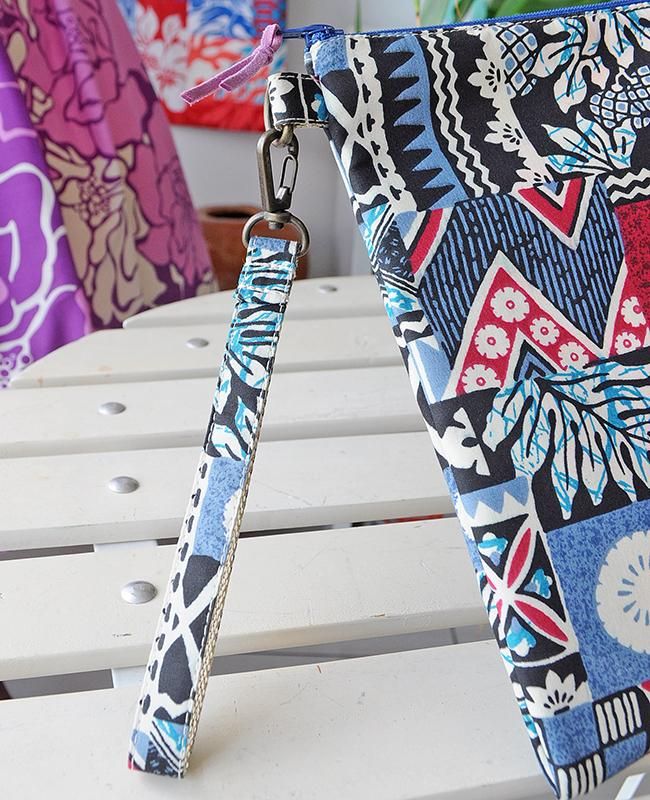 TOP > [ SALE ] Pink Leiオリジナル ハワイアンクラッチバッグ ククイなし/ブルー&レッド&ブラック・レトロハワイアン柄【在庫限り】