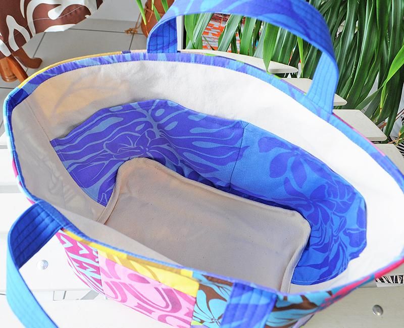 TOP > 〜新商品〜 Pink Lei【1点もの】ハワイアンパッチ・ひと回り大きいミニトートバッグM ブルー&ネオンマルチ