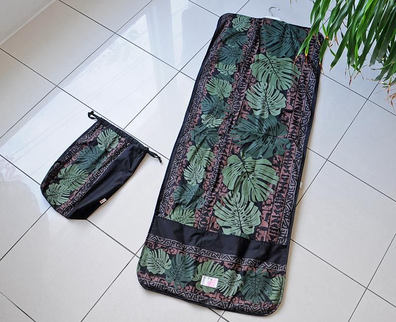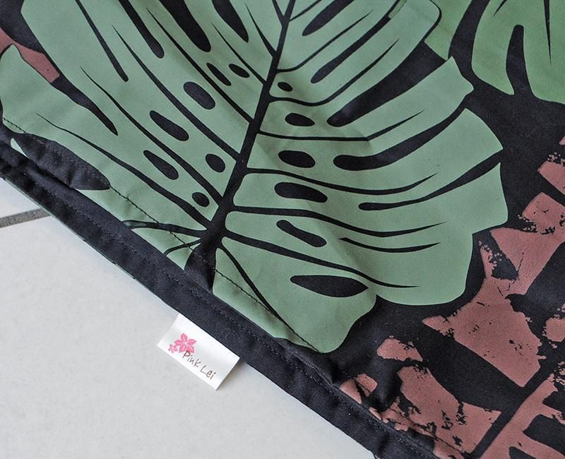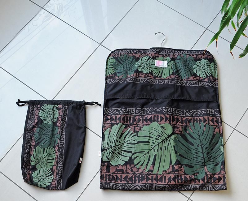 TOP > 【新商品】〜 1点もの 〜 Pink Lei ハワイアンガーメントケース(巾着付き) ブラック&ブラウン&グリーン/モンステラ&古典柄