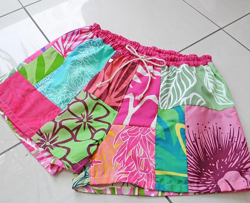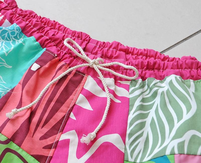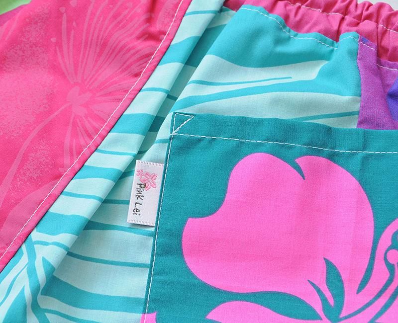 TOP > 【1点もの】 Pink Lei オリジナル/パッチパンツ ショートtype(パッチ大) ホットピンク&グリーン